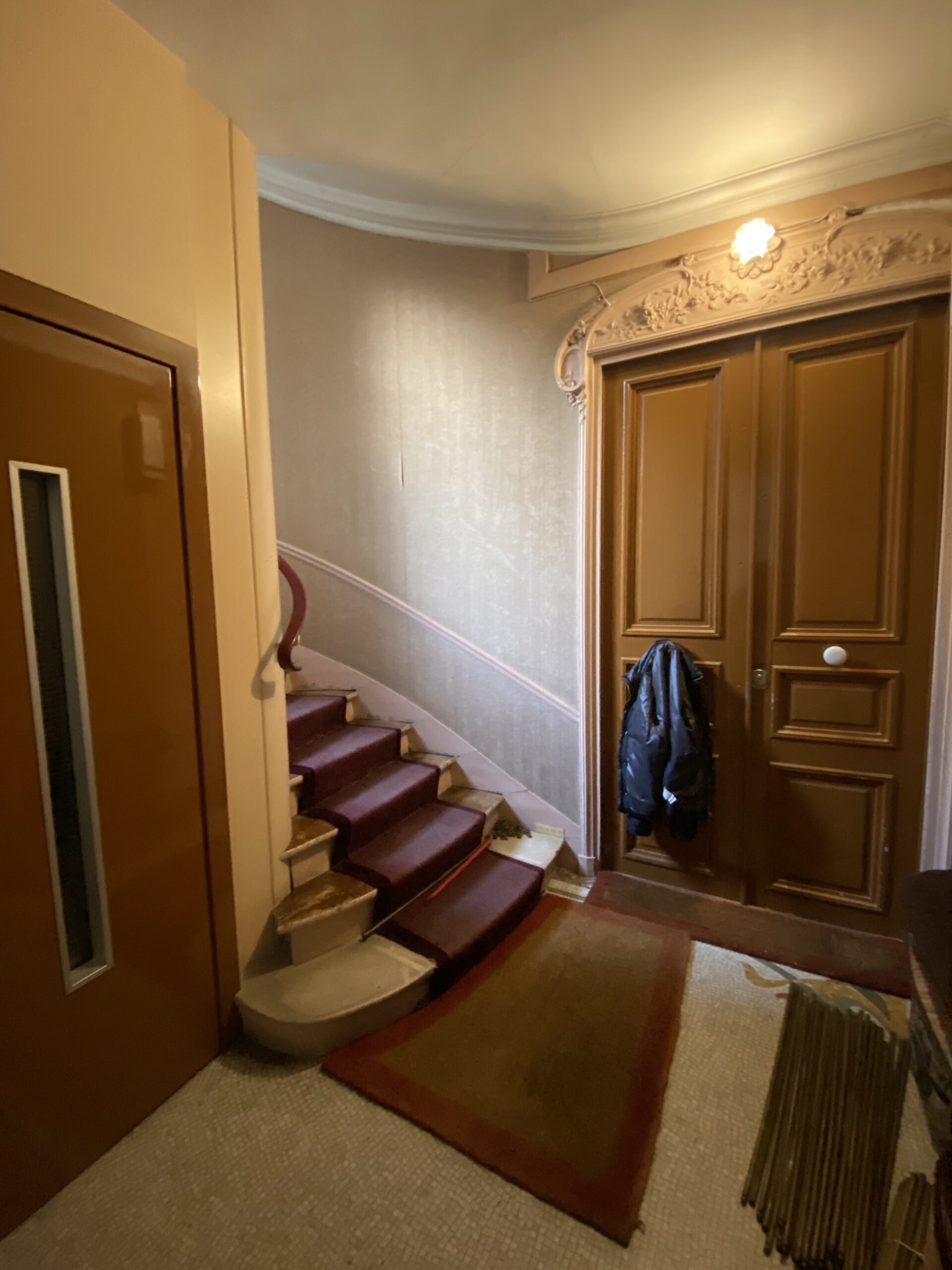 Objectif de ce projet: Rénover et apporter de la lumière dans une cage d’escalier d’un immeuble Art Nouveau construit en 1903, modifiée dans les années 70.