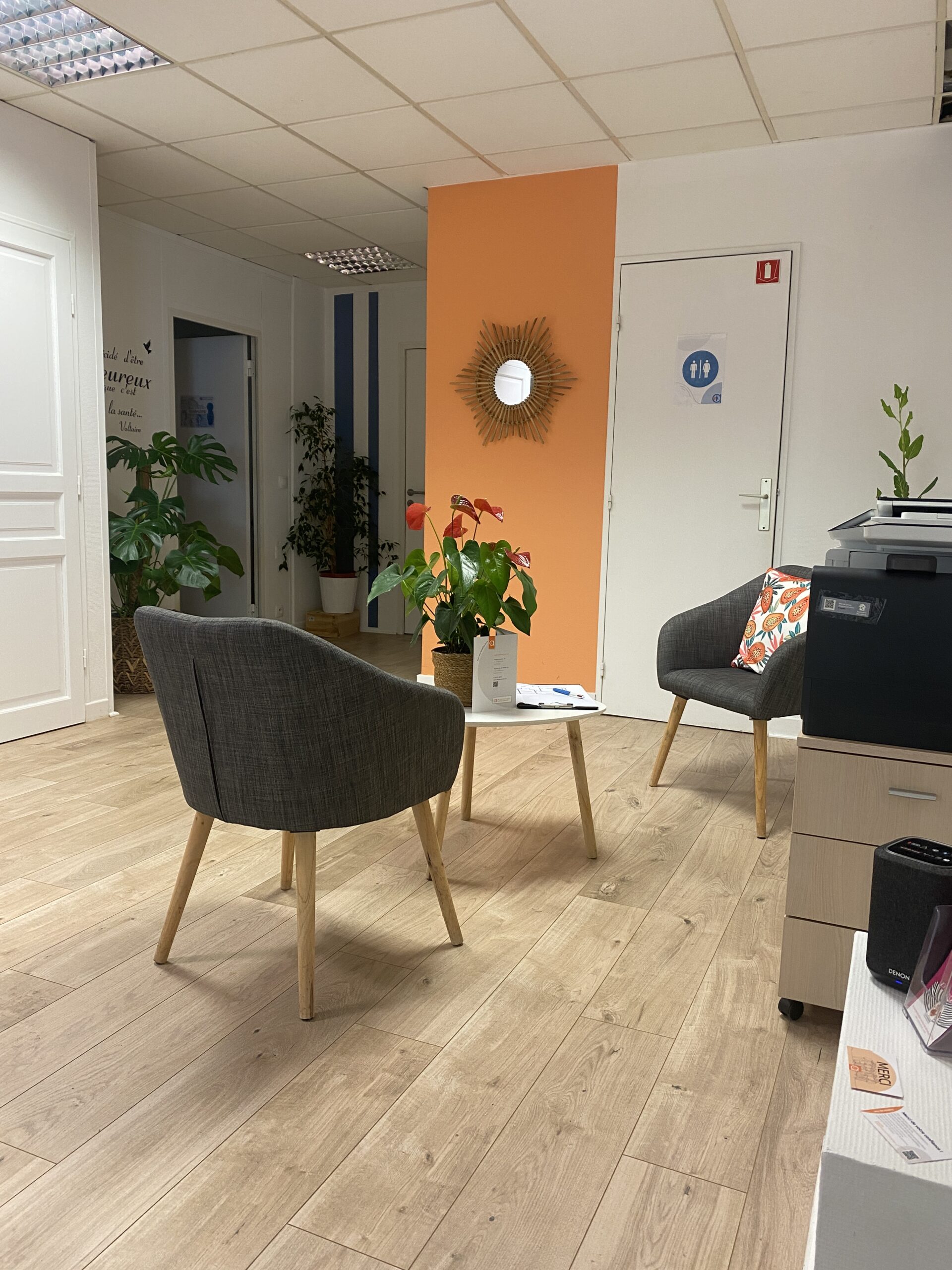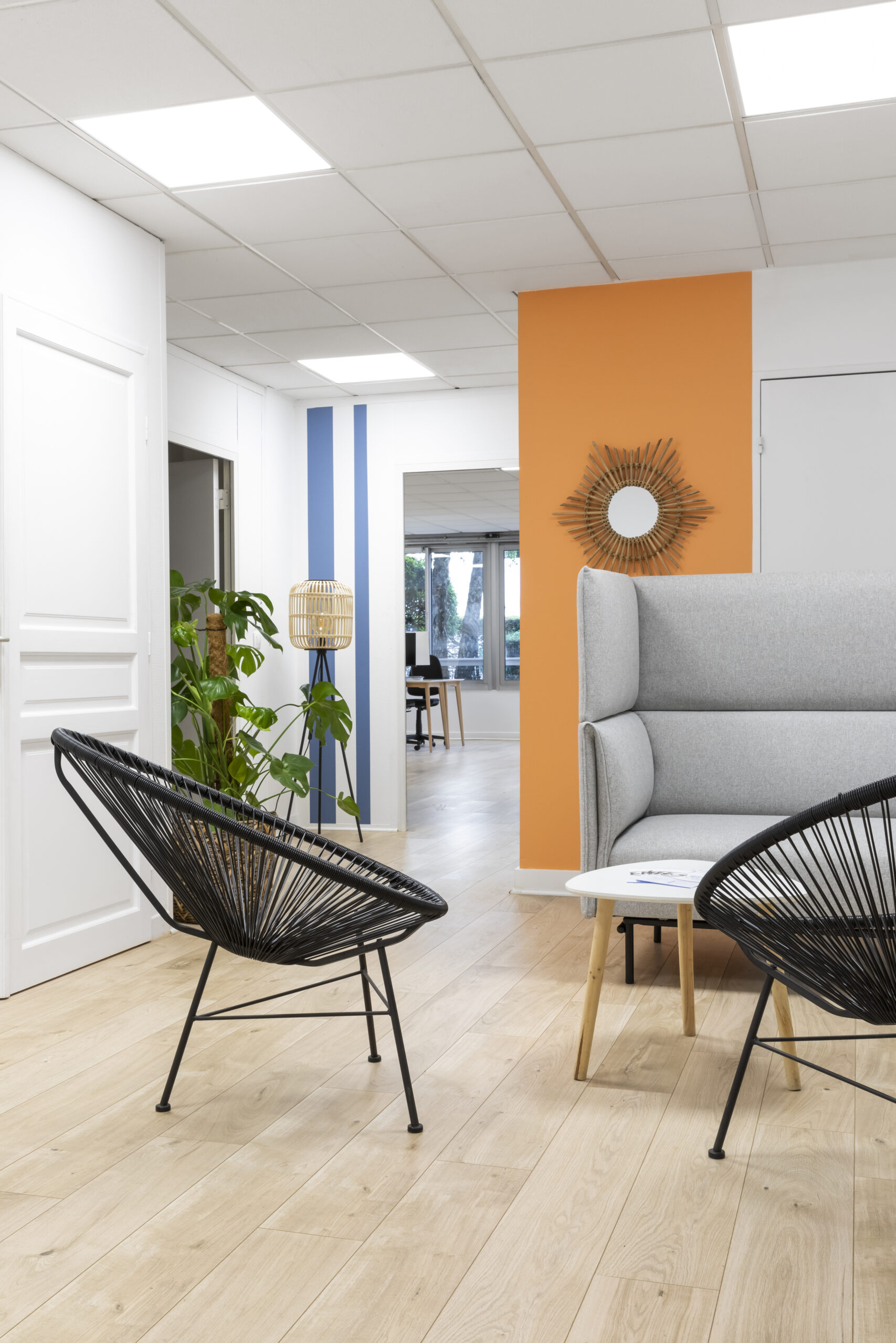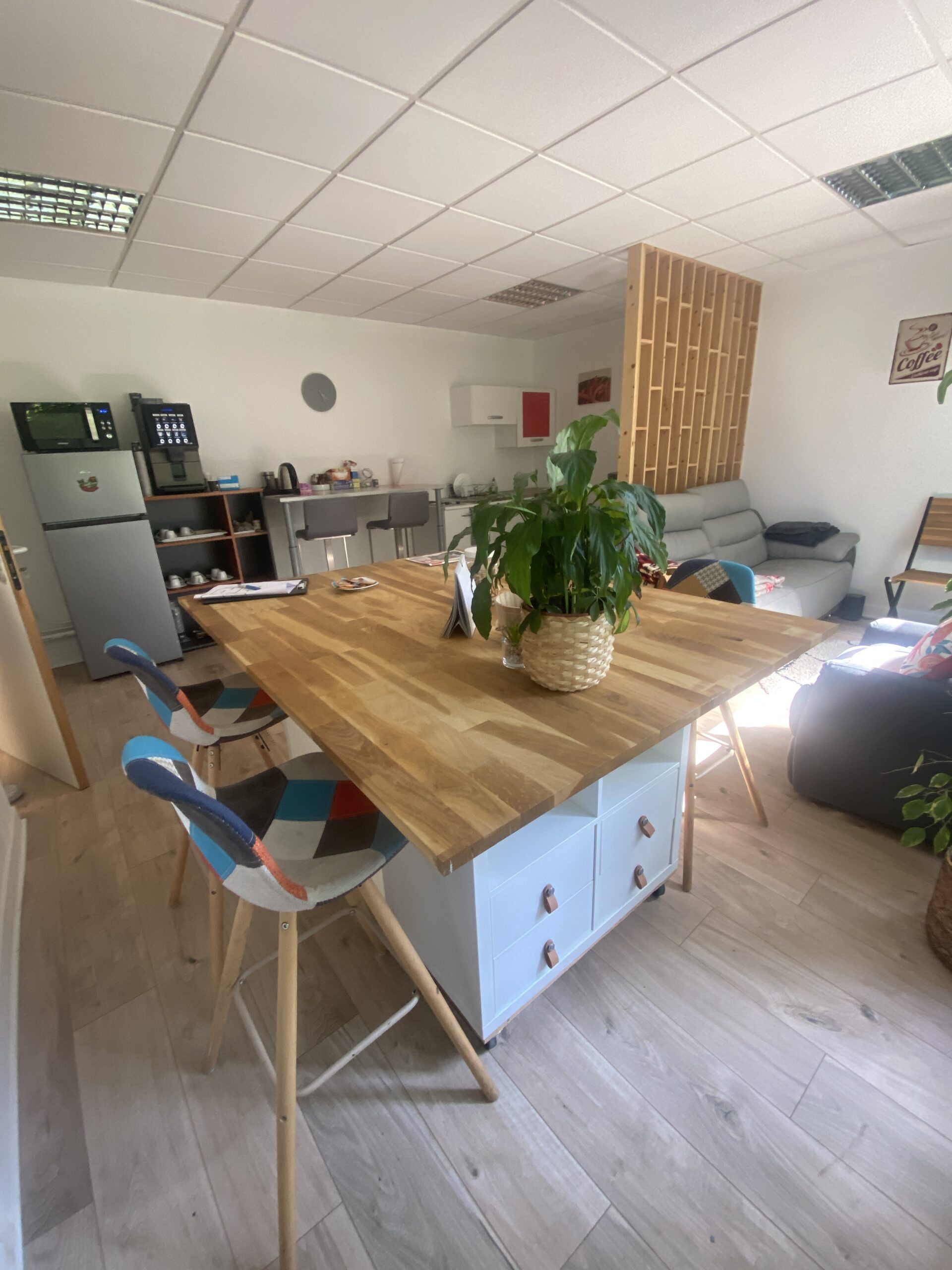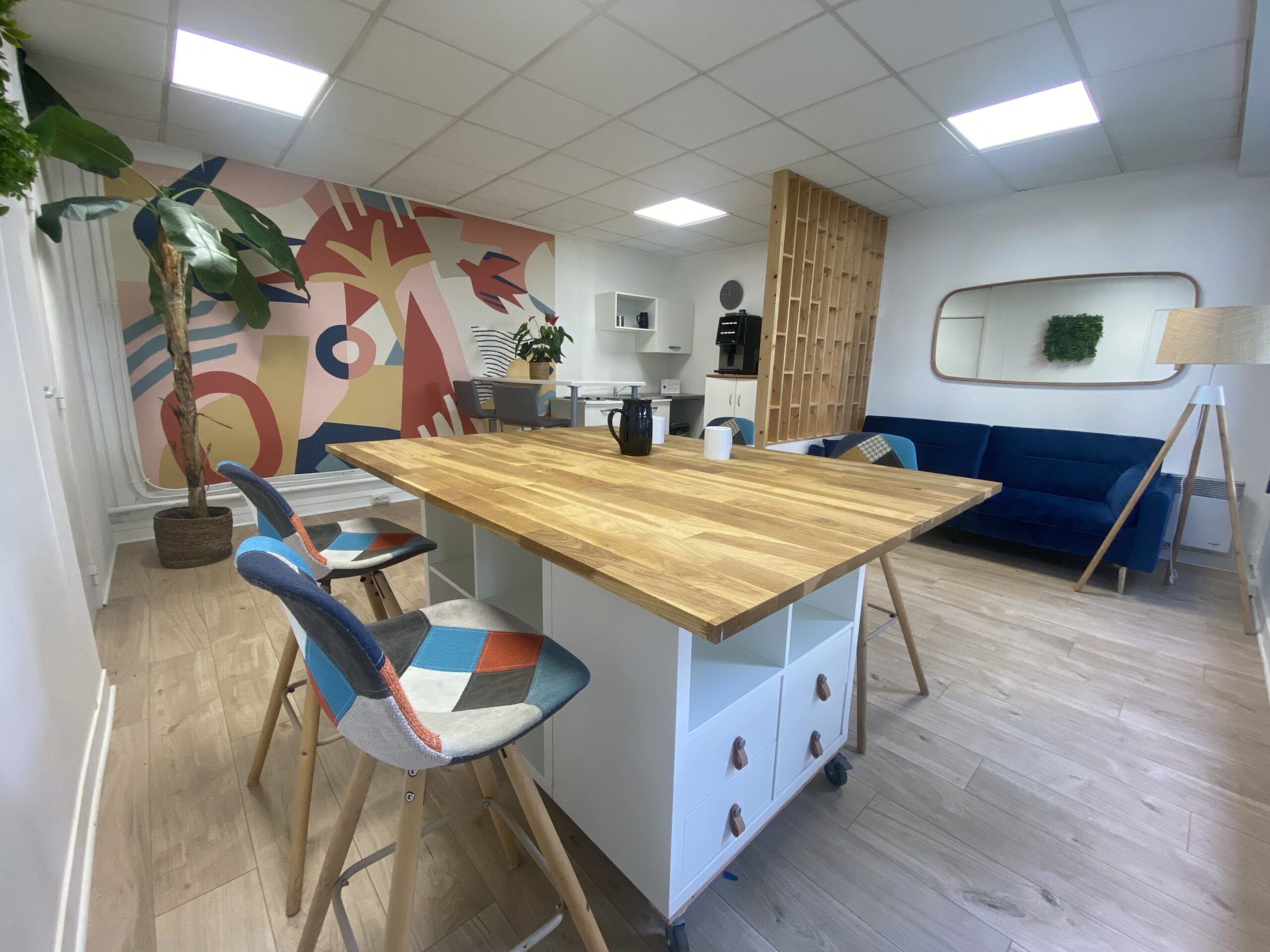 Luckily : Madame Pluton has opted for light parquet flooring, white furniture, and an abundance of plants. The entrance can accommodate a telephone meeting or a one-on-one. A new office has been designated for rental. The meeting room has been equipped with a screen and a whiteboard. The kitchen area has been transformed into a living space with the possibility of hosting gatherings. All of this promotes interactions among colleagues.